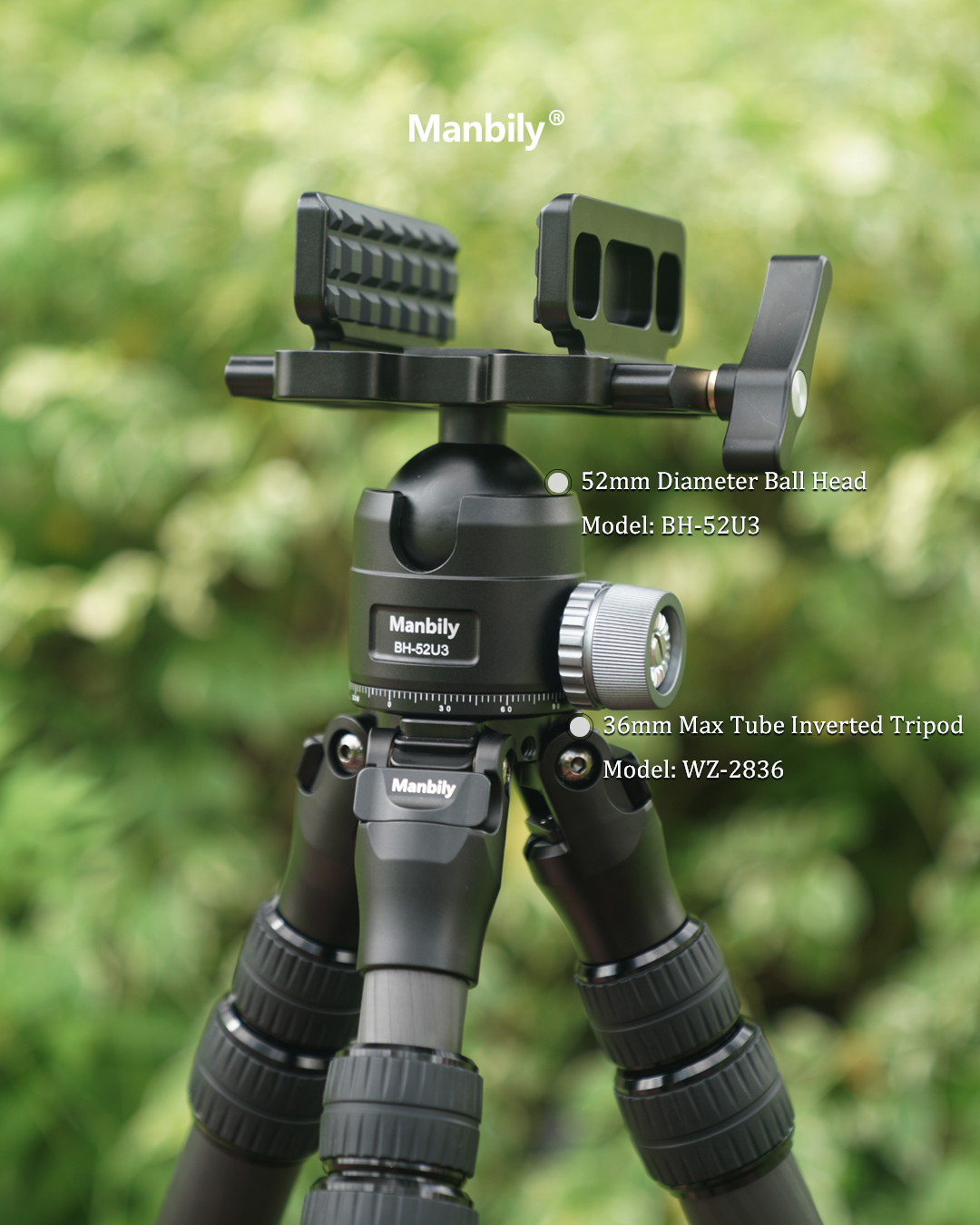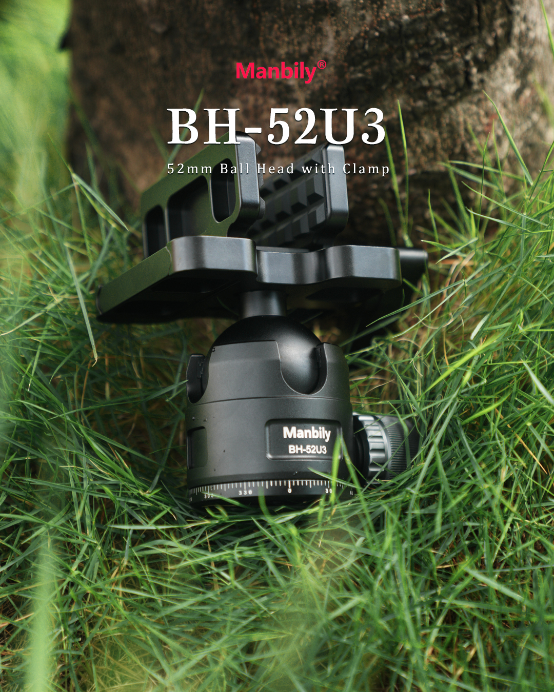 Manbily BH-52U3 52MM Large Ball Head with saddle clamp, 52mm Diameter Large Ball, 55lbs Load Capacity, 360° Ball Head