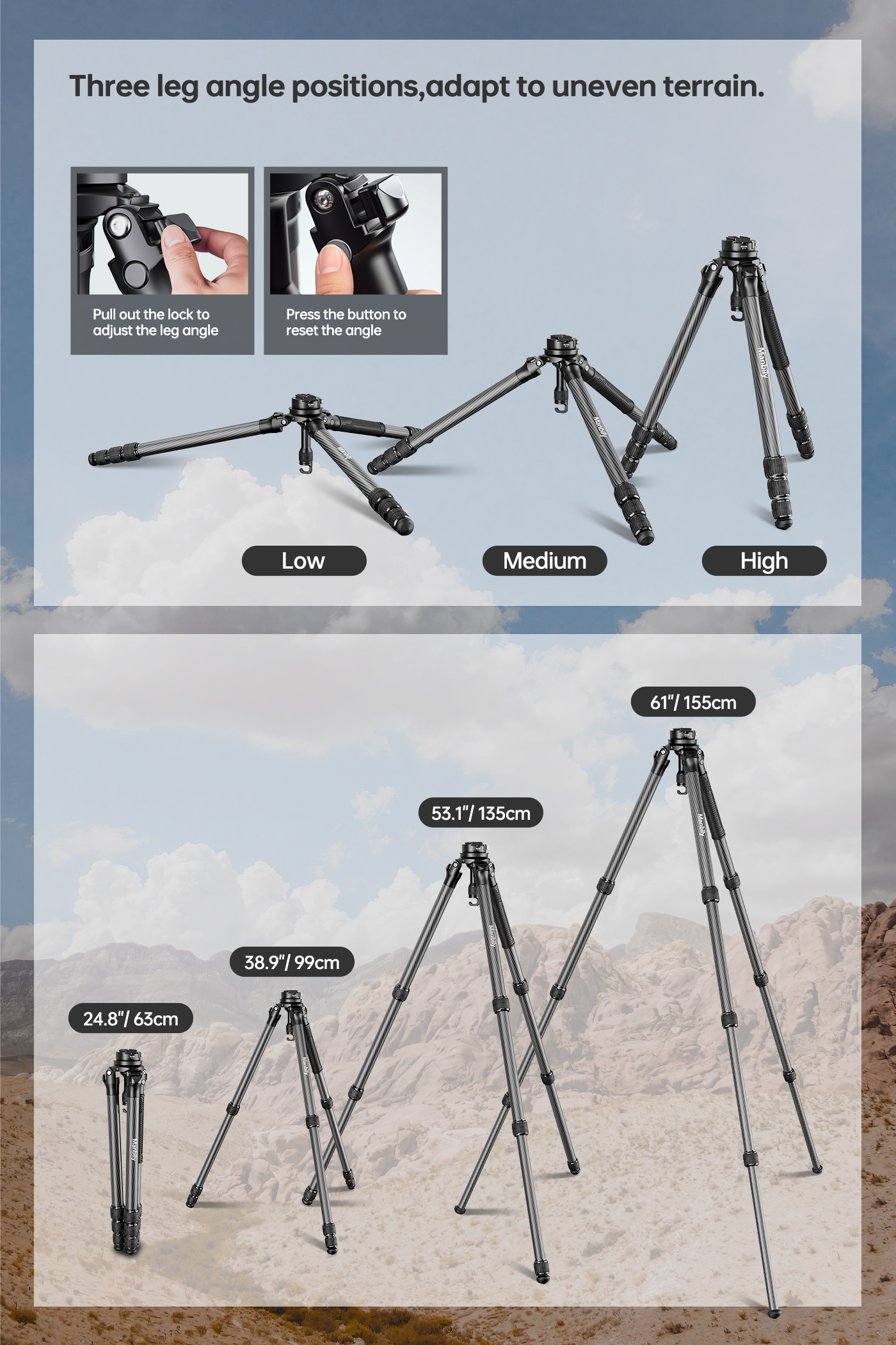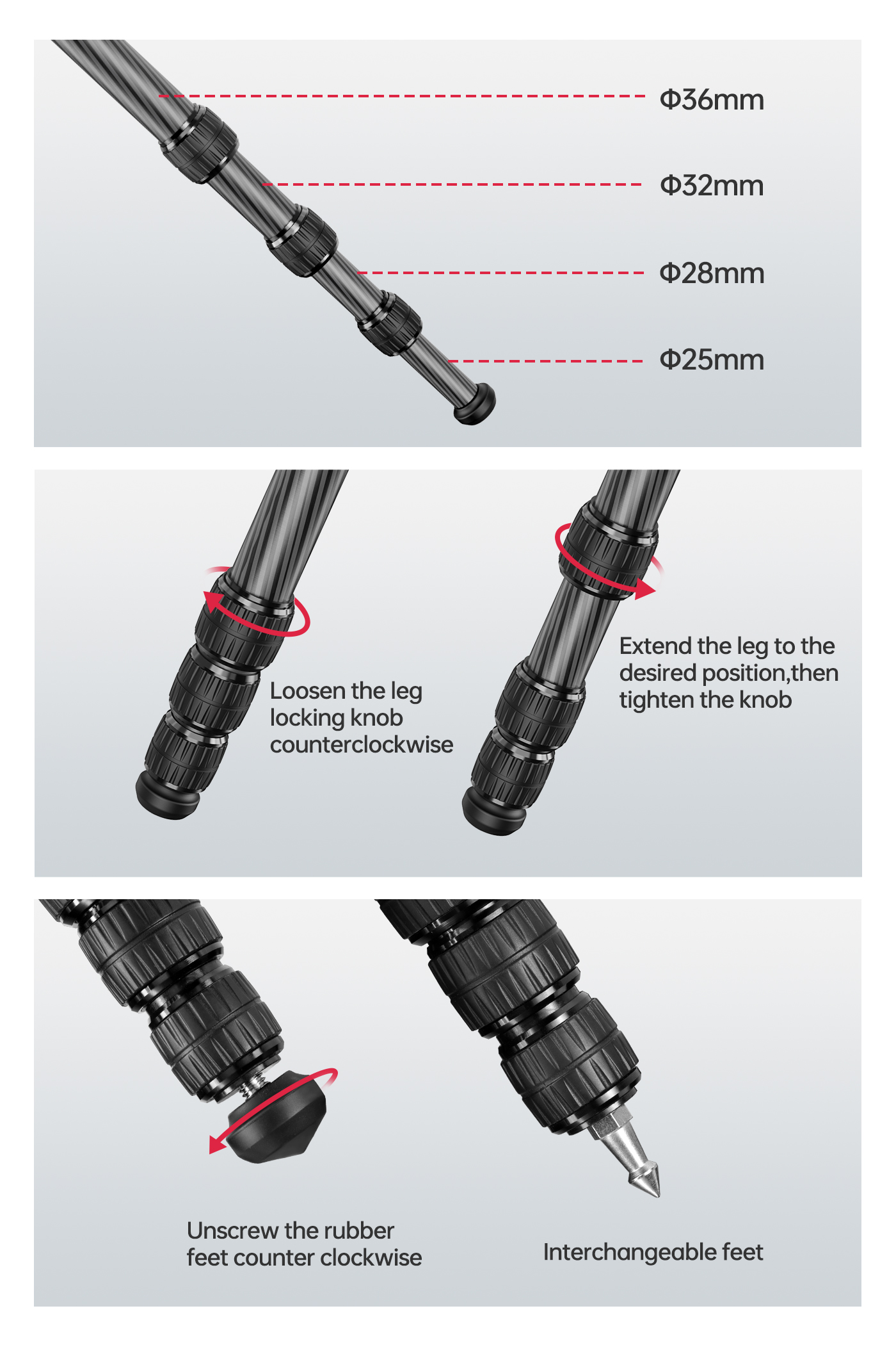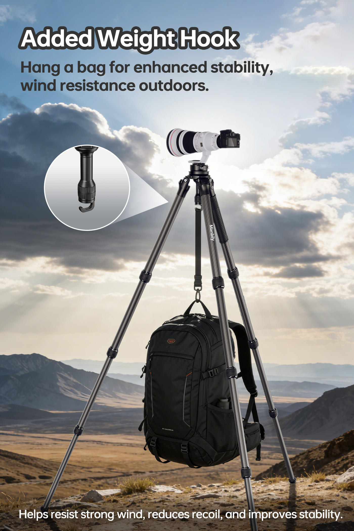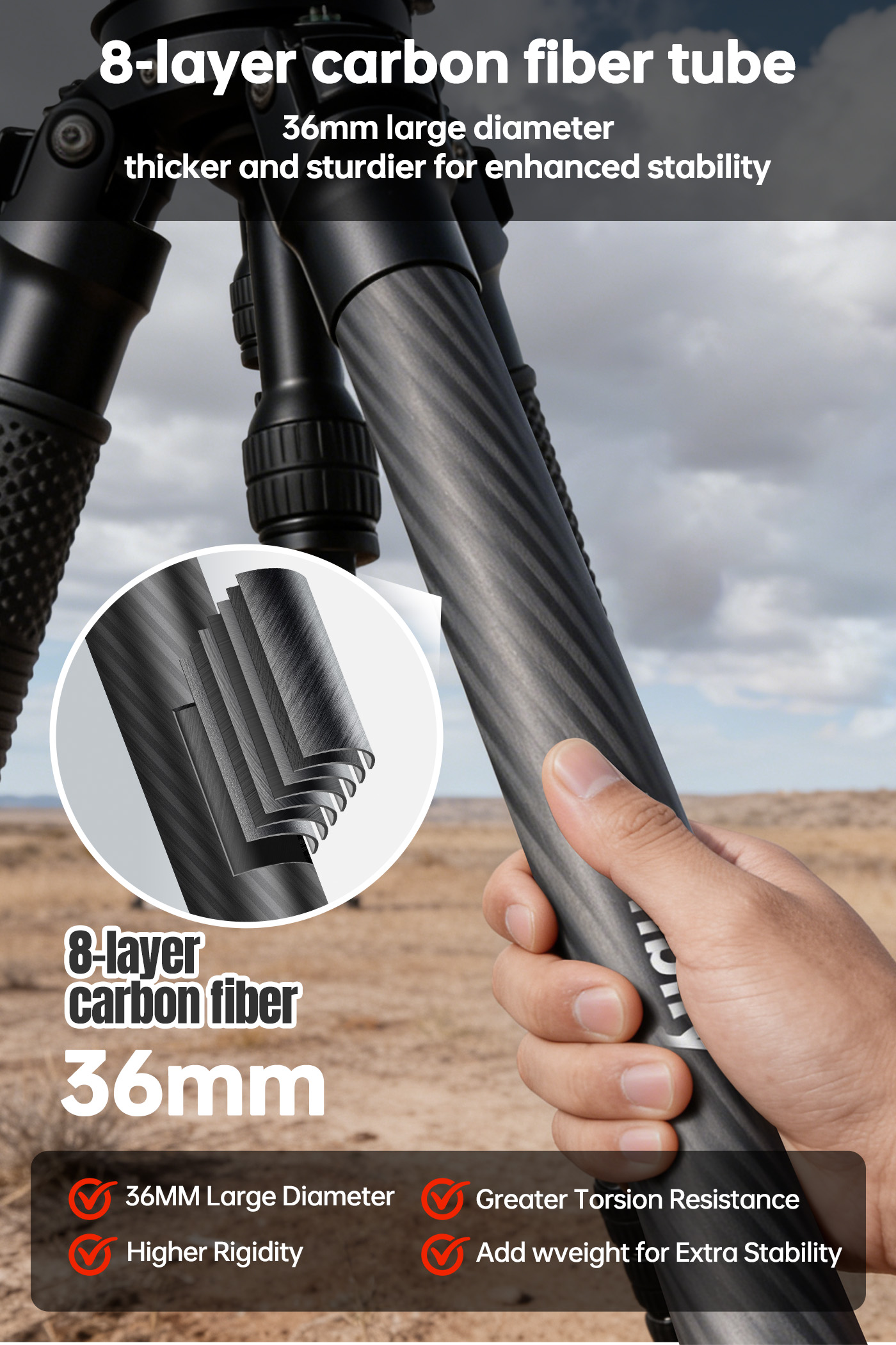 Manbily MT-364+BY-75 Carbon Fiber Heavy Duty Tripod, 36mm Max Tube Diameter with 75mm Platform Bowl Leveling Head